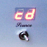 Die zweistellige 7-Segment-Anzeige zeigt die momentane NF- Quelle, CD oder Tuner, an.