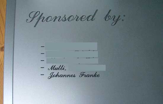 Und auf der Oberseite ist jeder, der zugelegt hat, mit verewigt worden....