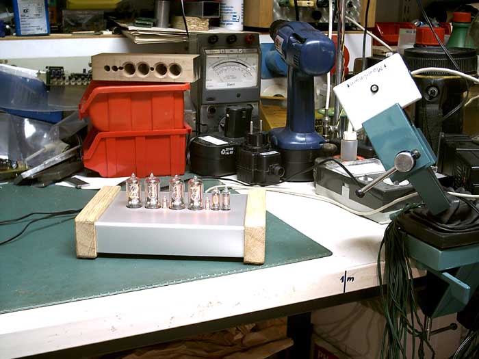Dieses war das erste Foto, der Versuchsaufbau zum austesten der Anodenwiderstände :