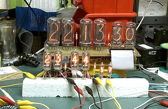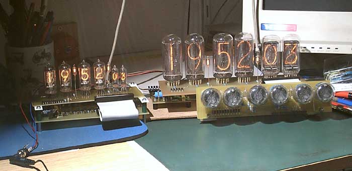 Die zuoberst gezeigte Nixieuhr (mit der alles anfing...) hatte Dieter inzwischen sehr ansperechend in ein Gehäuse