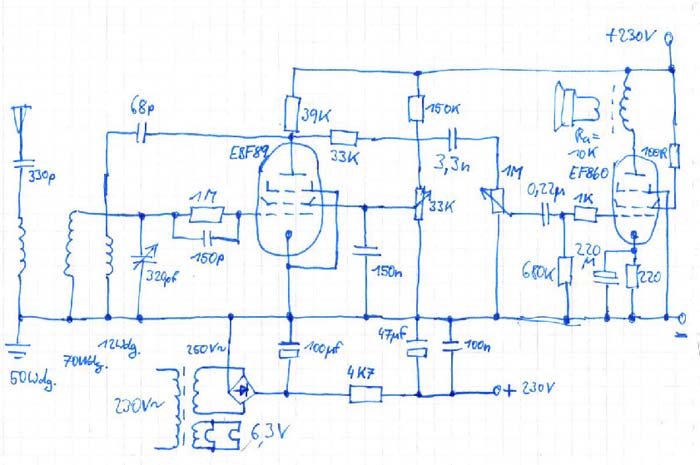 Die EF860 gefiel mir schon ganz gut für ein Audion. Aber ich brauchte noch eine zweite Röhre als NF-Verstärker.