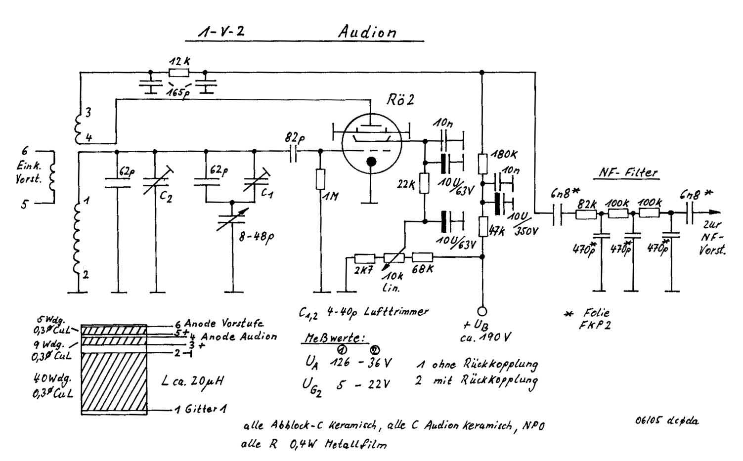 Besonders beim Audion können sich aber beim Nachbau individuelle Unterschiede der Werte ergeben.