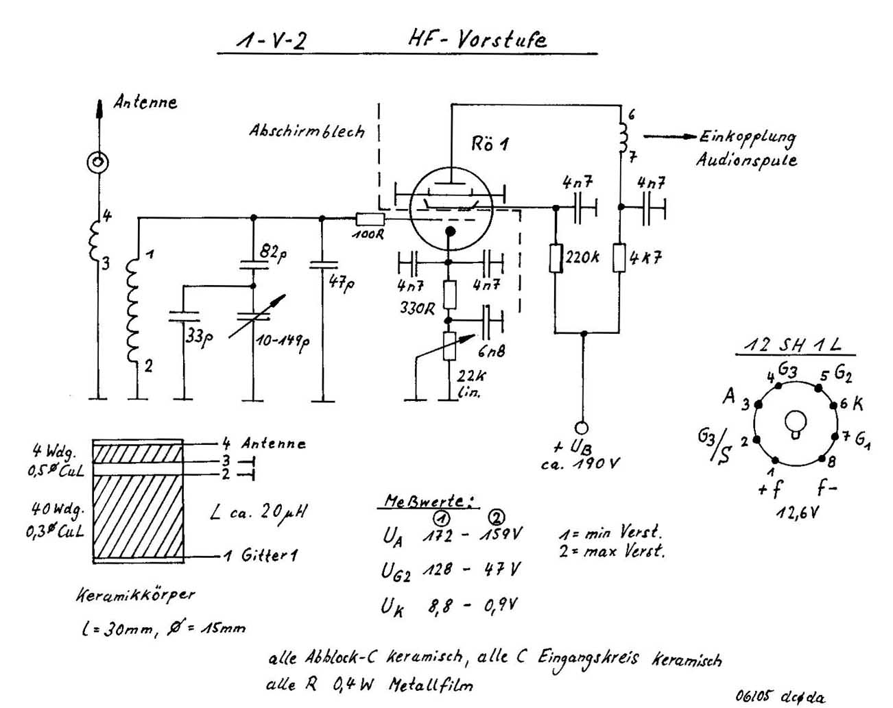 Heizungs-Brumm erreicht (Fassungsbelegung ist im Schaltbild Röhre 1 HF- Vorstufe zu finden).