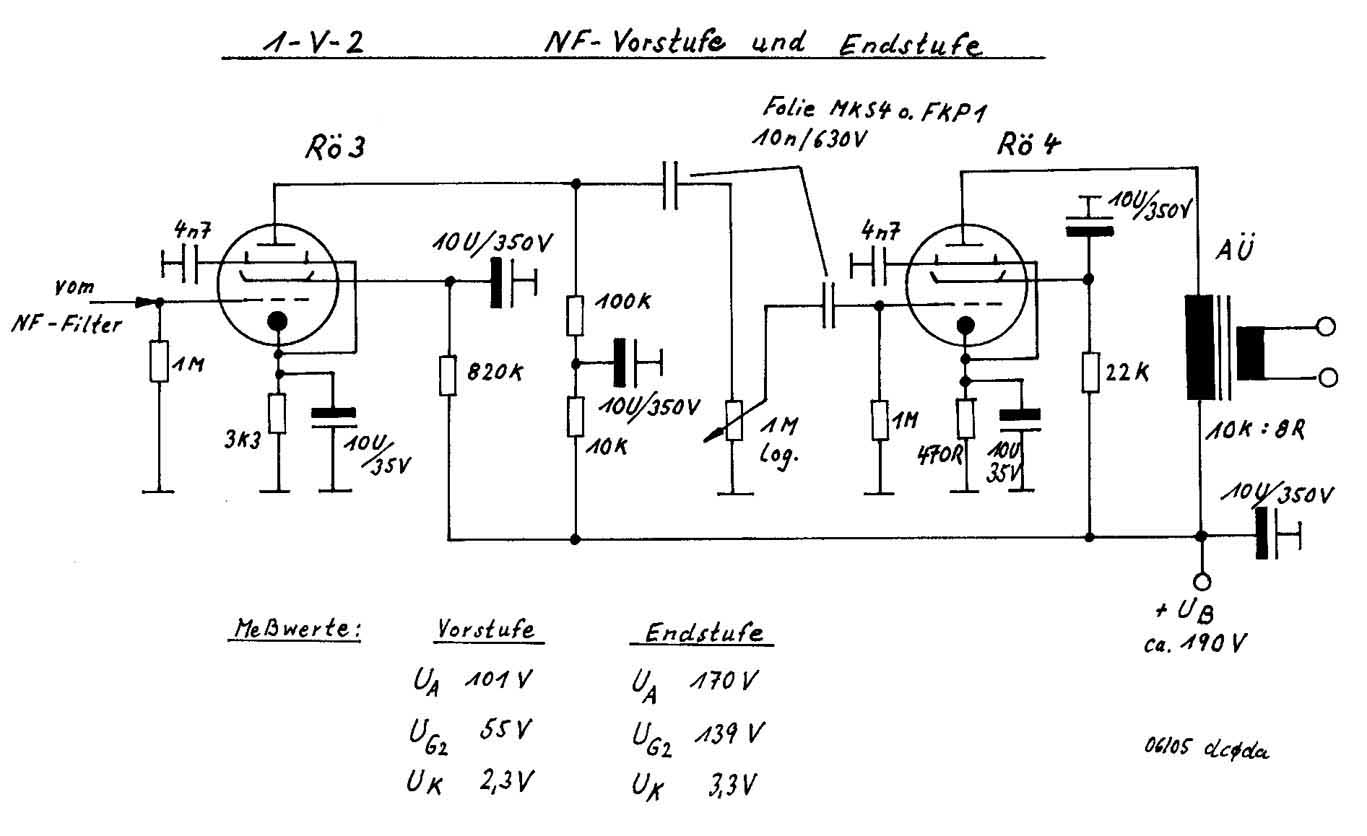 Zur NF- Vorstufe und zur Endstufe gibt es keine Besonderheiten, werden die Widerstandswerte in etwa eingehalten,