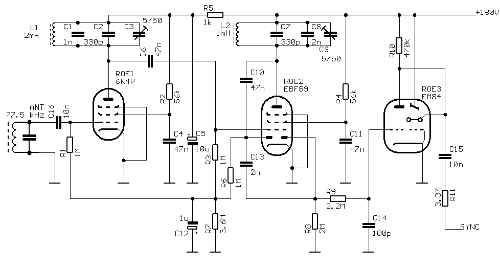 Regelcharakteristik verwendbar, z.B. die EF89. Im Anodenkreis befindet sich ein auf den Zeitzeichensender abgestimmter
