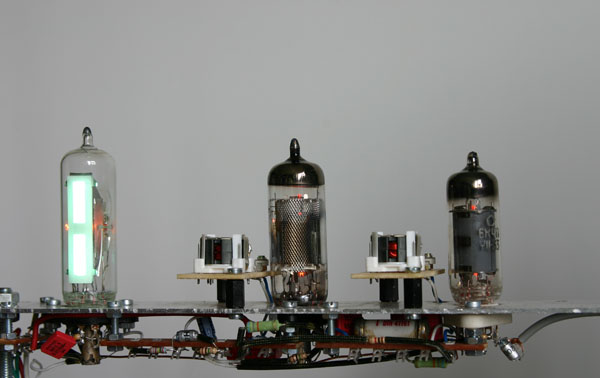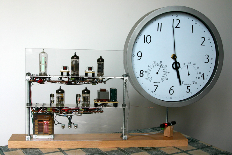 Dieser Beitrag beschreibt den Bau einer elektronischen Uhr mit Röhren und einem analogen Uhrwerk.