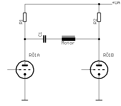 Wir steuern abwechselnd eines der beiden Röhrensysteme durch. Dabei erhalten wir an den Anoden zwei zueinander inverse