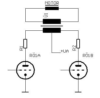 Impulse in entgegengesetzten Richtungen. Allerdings liegt eine krasse Fehlanpassung vor: Die Anodenwiderstände sind