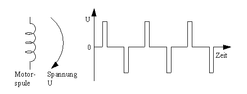 Rechteckspannungen. Diese werden durch den Kondensator differenziert und als Ergebnis fließen durch die Motorspule
