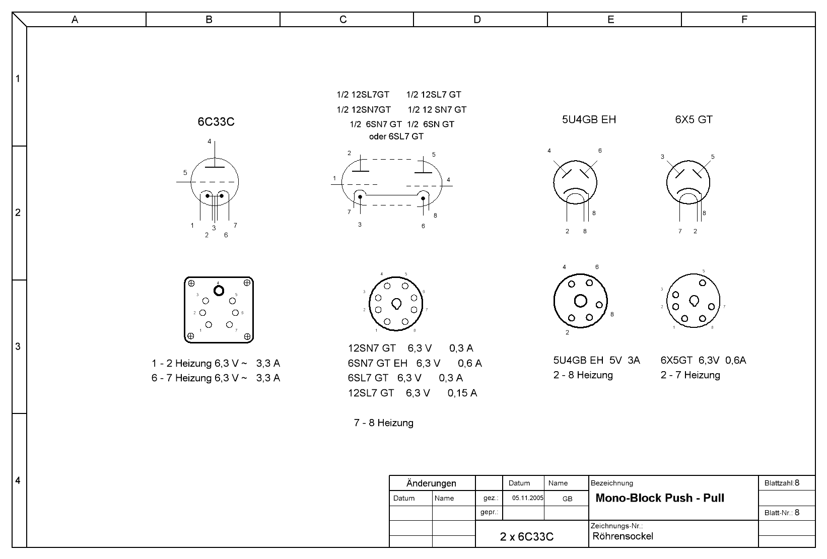 Die verwendeten Röhren mit ihren Anschlüssen: