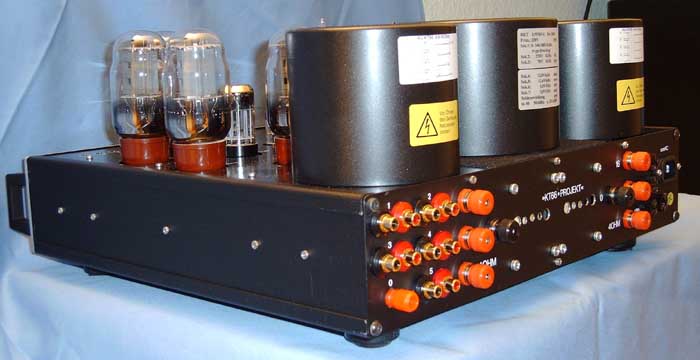 umschaltbar auf Triode oder Ultra-Linear. Durch die Umschaltung von 4 auf 8 und 16 Ohm kann man den Verstärker mit fast