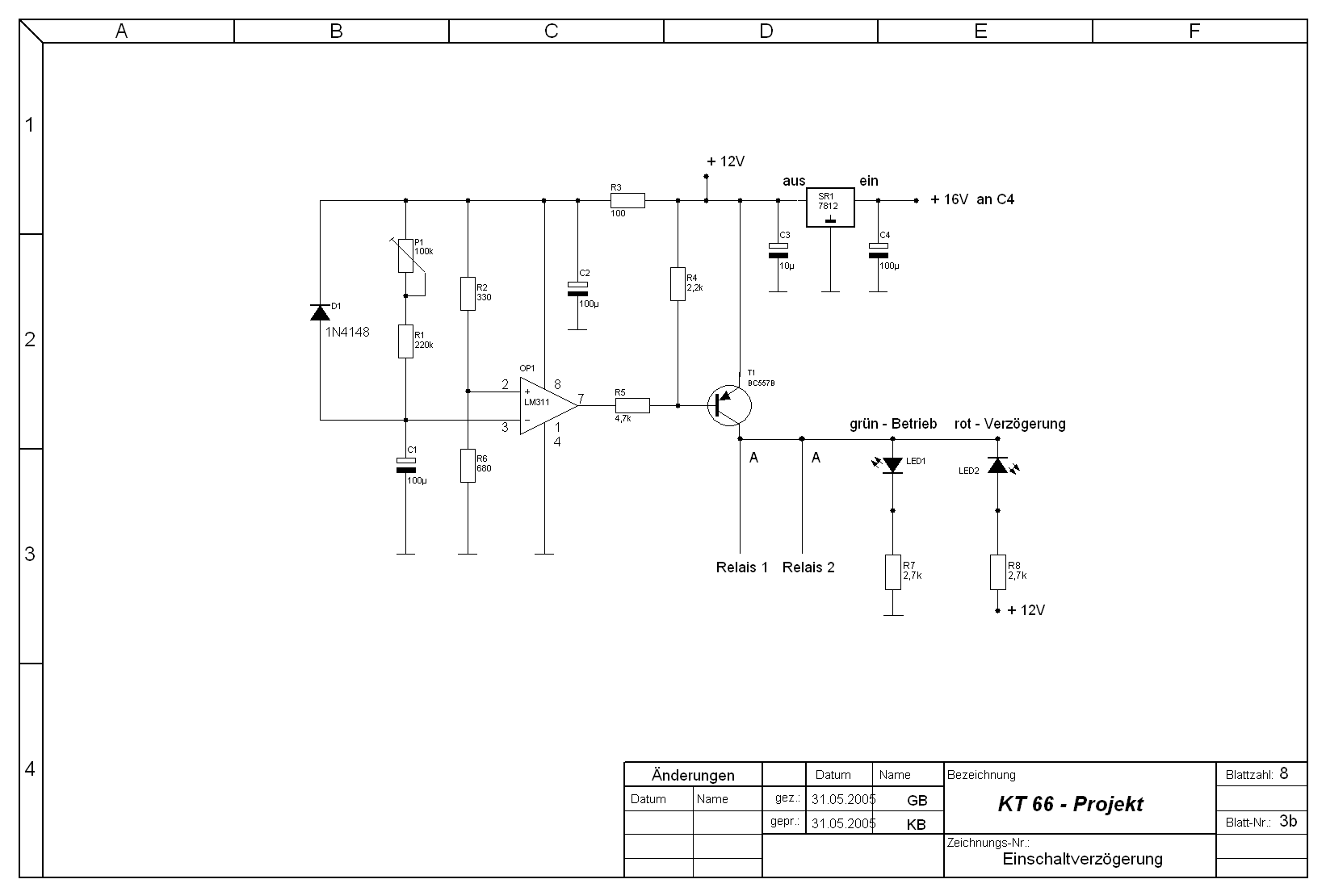 Die Verzögerung ist mit dem Spannungskomparator LM 311 beschaltet und ist sehr einfach aufgebaut.