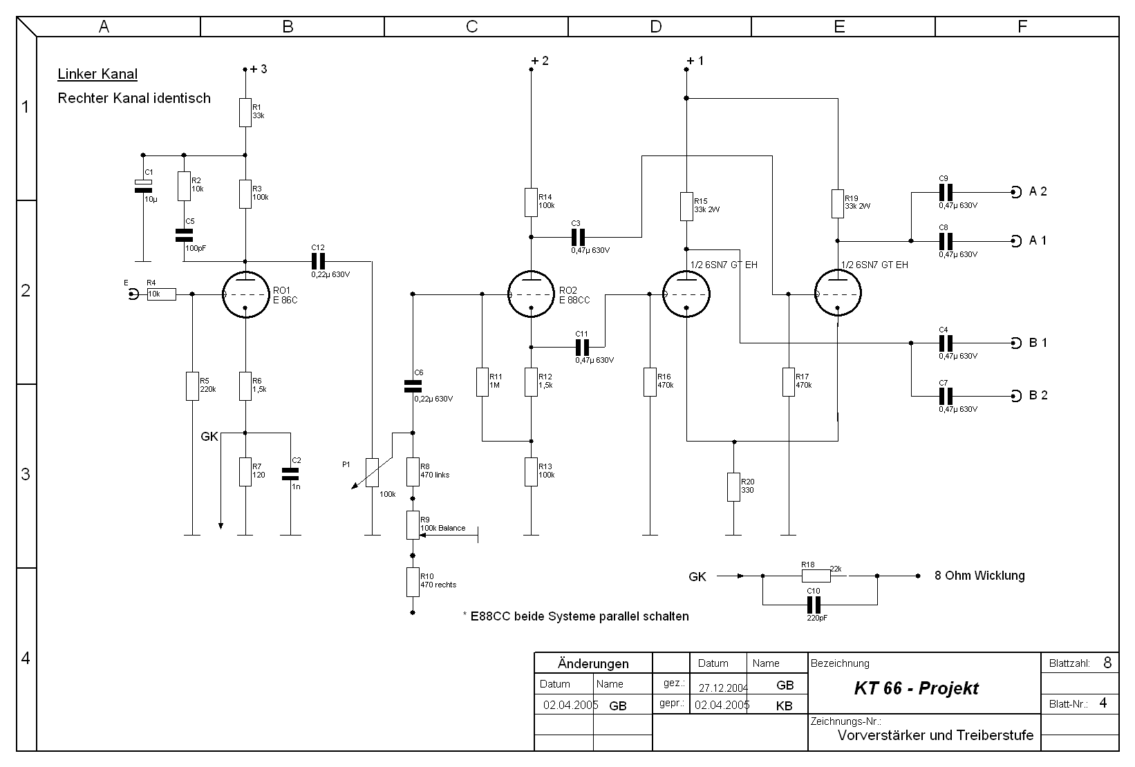 Für das KT 66 Projekt kammen also nur die Röhren E88CC (6922) und E 86C (EC86) in Frage.