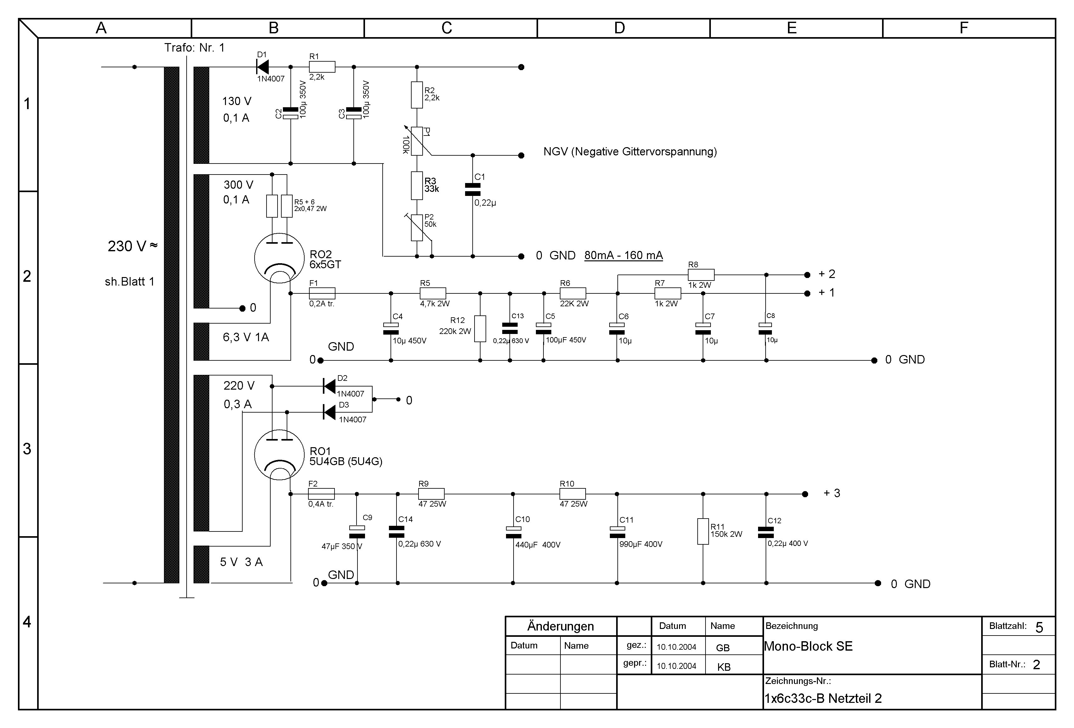 Das Netzteil 2 besteht aus 5 Sekundärwicklungen 130V 0,1A für die NGV, 300V 0,1 A für die Betriebsspannung