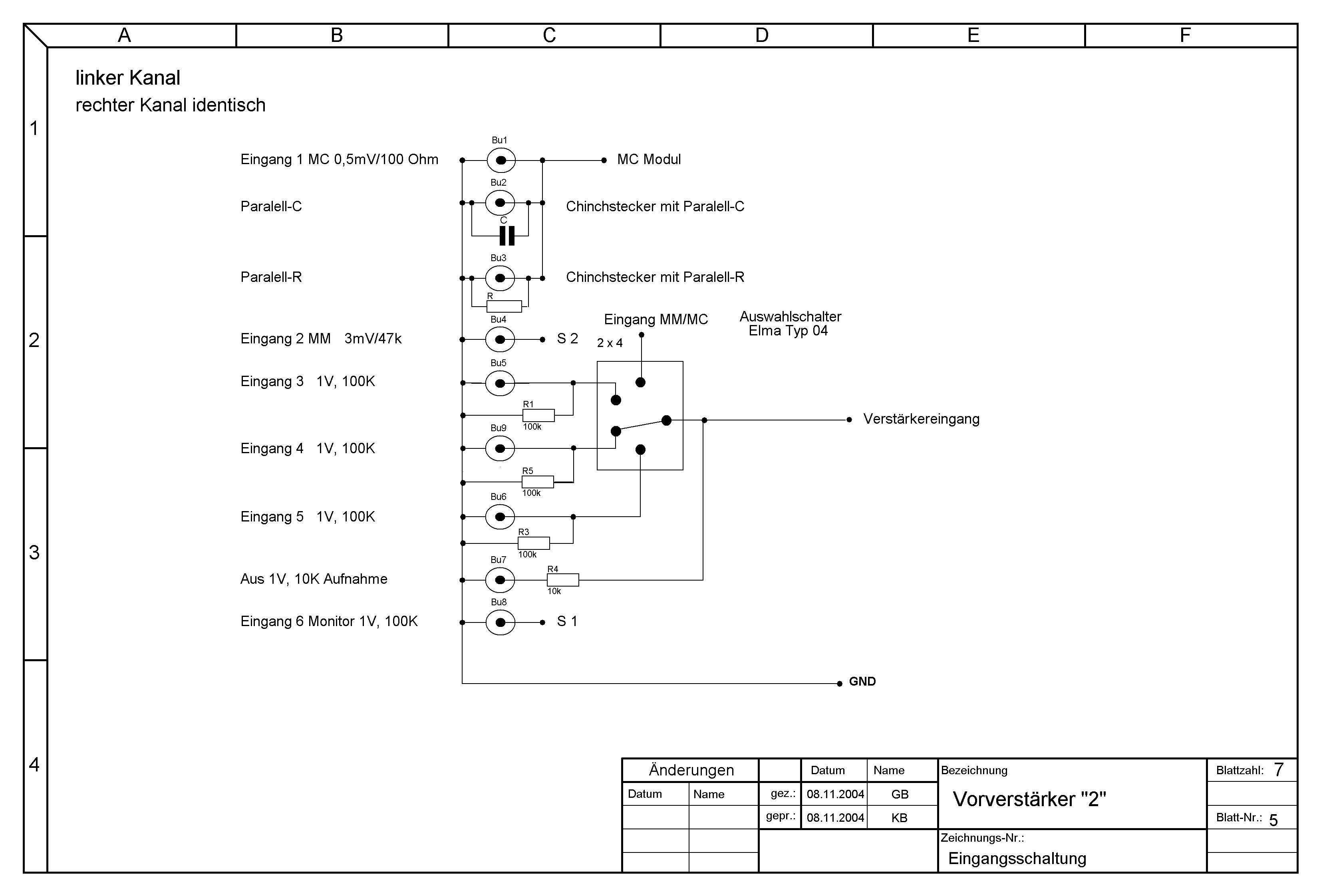 Vorverstärker - Blatt Nr. 5 Eingangsschaltung