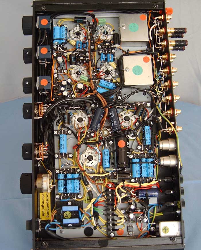 versilberten Kontakten Verwendung. Auf den Röhrenvorverstärker befinden sich 7 Röhren. Der "Lineare"