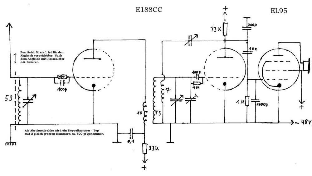 - Der 1000pf Kondensator am Gitter der EL95 dient der Ableitung