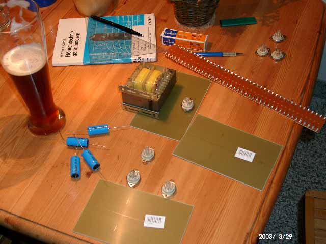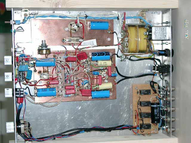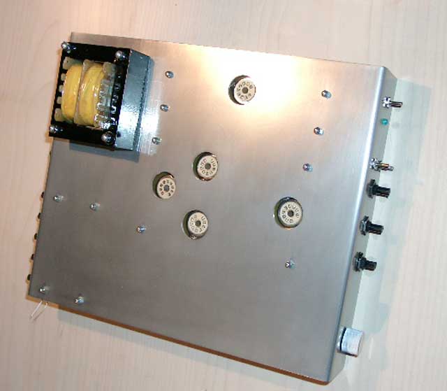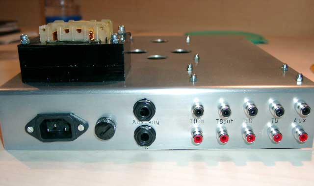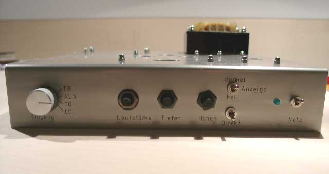 Und noch einmal das Bild vom fertigen Gerät (noch ohne Trafo-Abdeckhaube) :