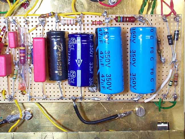 Alle Kondensatoren sind WIMA MKP-10 mit 630V, bzw. Keramikkondensatoren von KERKO mit 500V. Die Widerstände, soweit sie