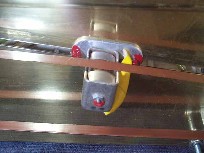 und Halt zu bieten. Er wurde mittels einer Kunststoff-Unterlegscheibe an der Gehäuseoberseite befestigt.