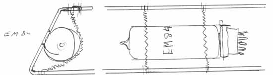 Die Montage der EM84 erfolgte mit Hilfe einer Feder, unter die die Röhre geschoben wird und durch deren Spannung