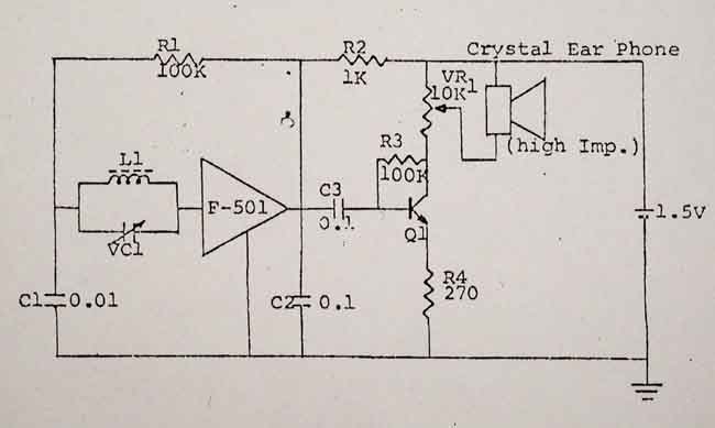 (siehe Schema unten), resultiert ein sehr empfindlicher Empfänger. Es sind nur sehr wenige zusätzliche Bauteile