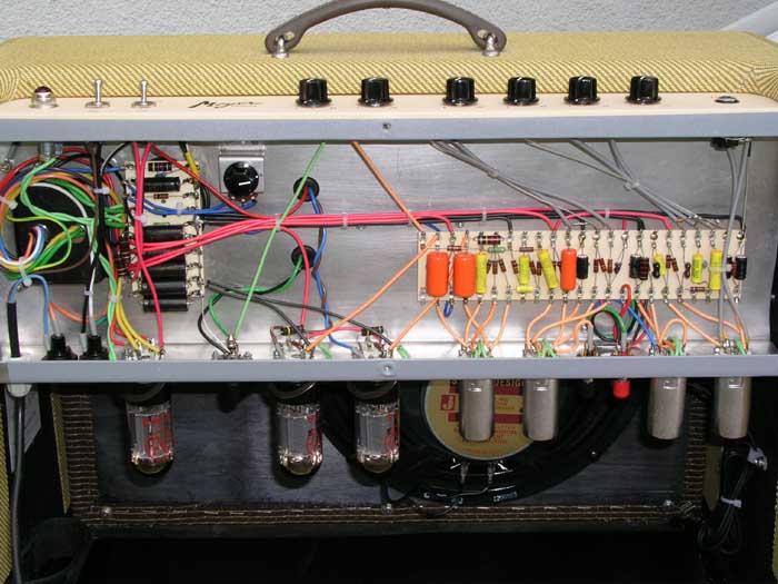 und Röhrenfassungen etc. des Original - Deluxe Reverb, man findet im weltweiten Netz diverse Bilder seines Chassis.