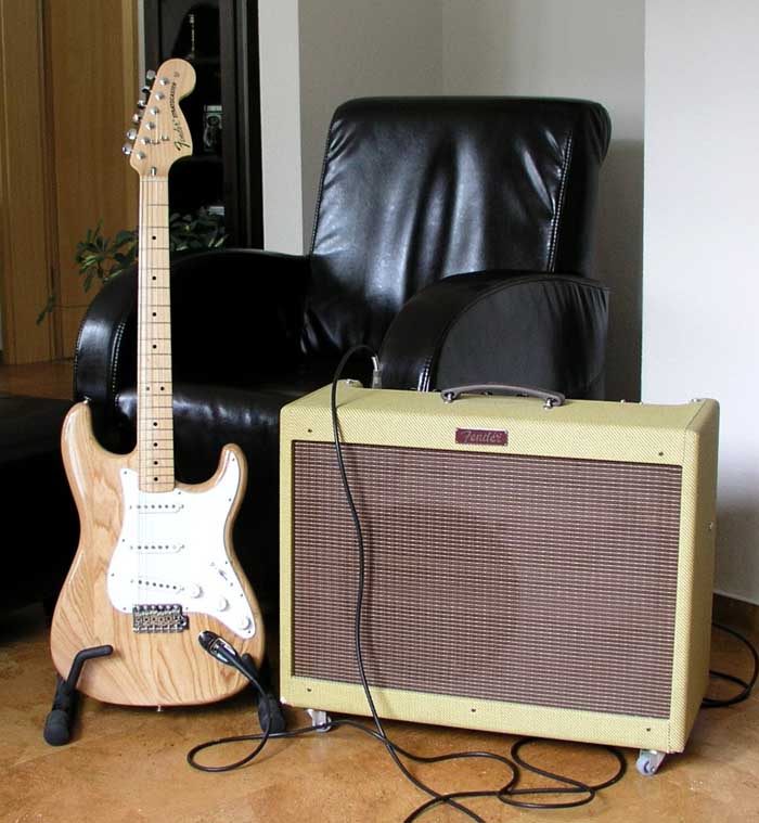 begann es damit, dass ich des Schleppens meines recht schweren Blues-Deluxe-Verstärkers leid war, hier die Ansicht des