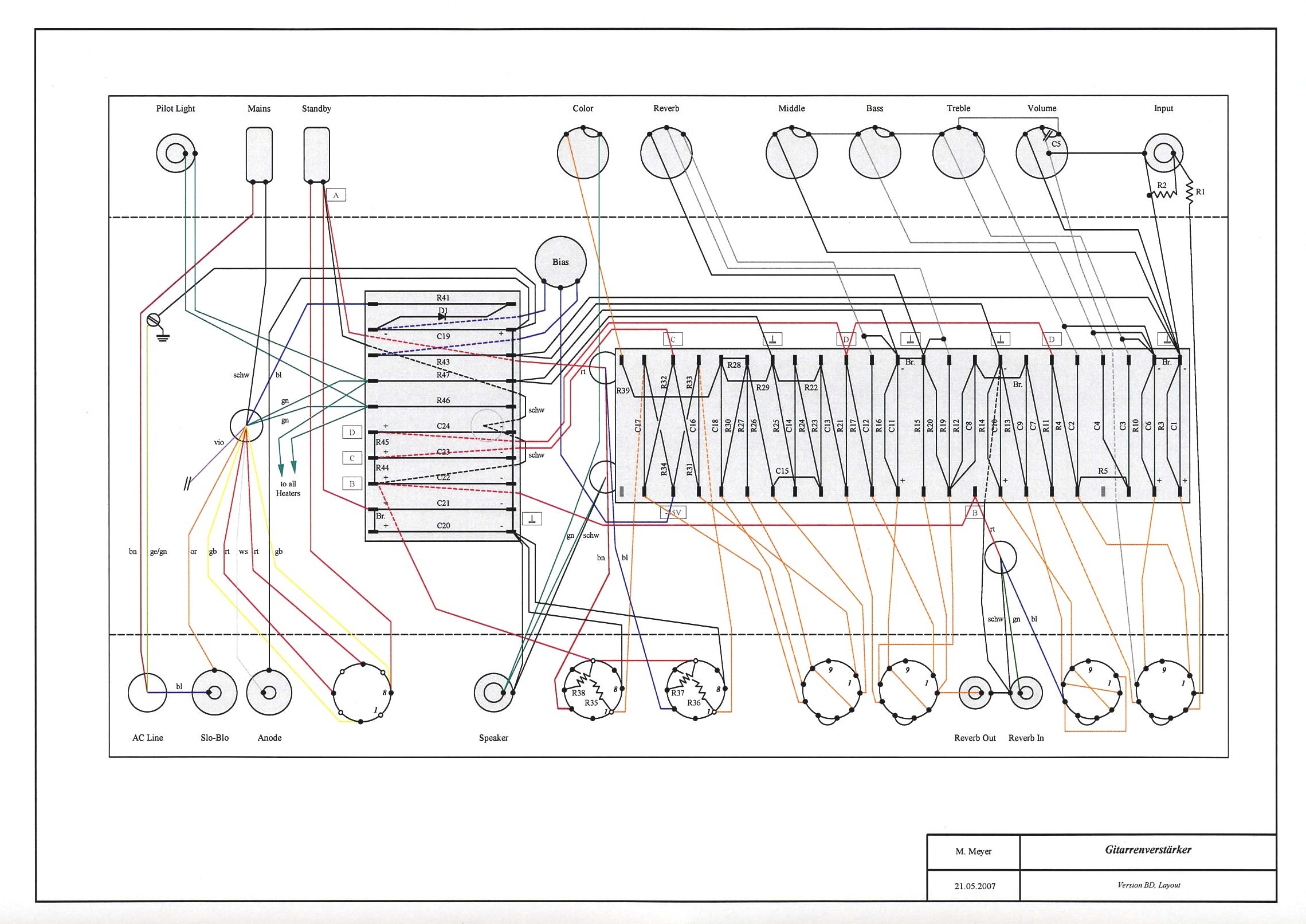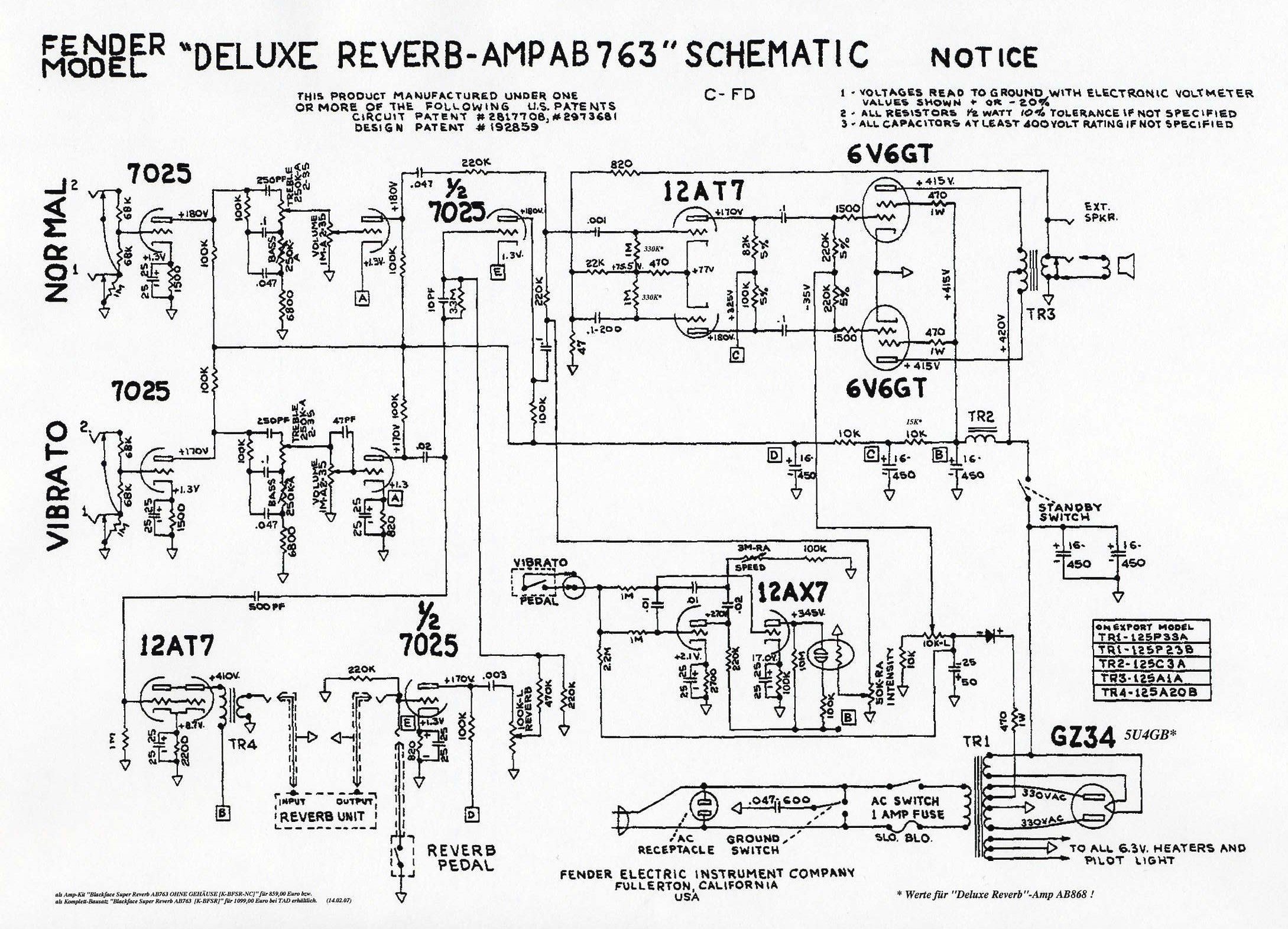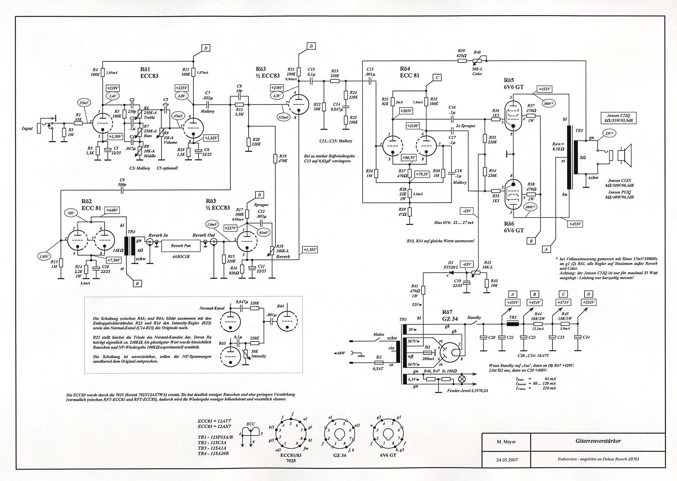 Man ziehe zunächst das Schaltbild des Originals Deluxe Reverb AB763 heran [1].