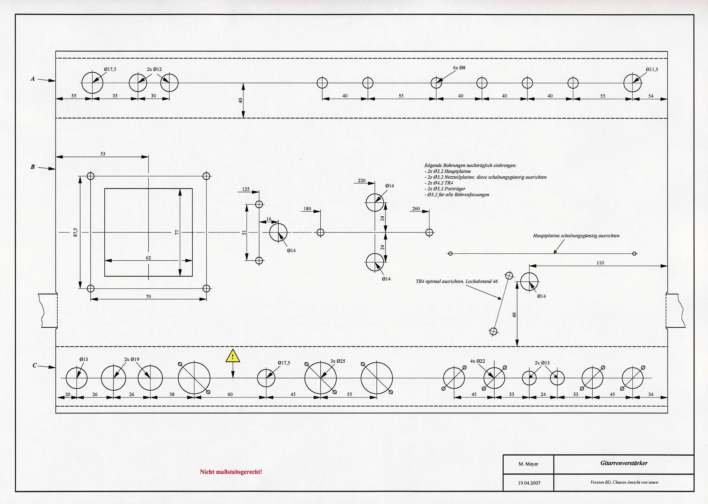 Da das Chassis ein 1:1-Replacement-Chassis zum Blues Deluxe werden musste, habe ich also die Maße dieses Chassis