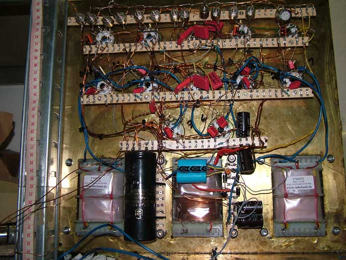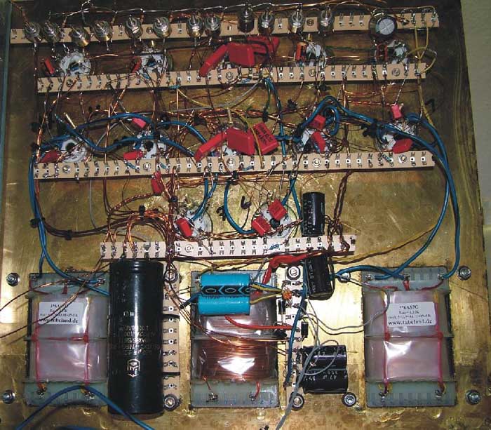 Das Netzteil ist einfach aufgebaut. Die Vorstufenspannung und die Heizung der Vorröhren habe ich über einen