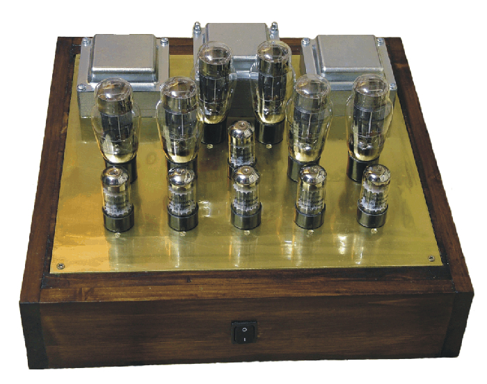 6AS7G Gegentakt Amp mit 12 Röhren auf Messingplatte