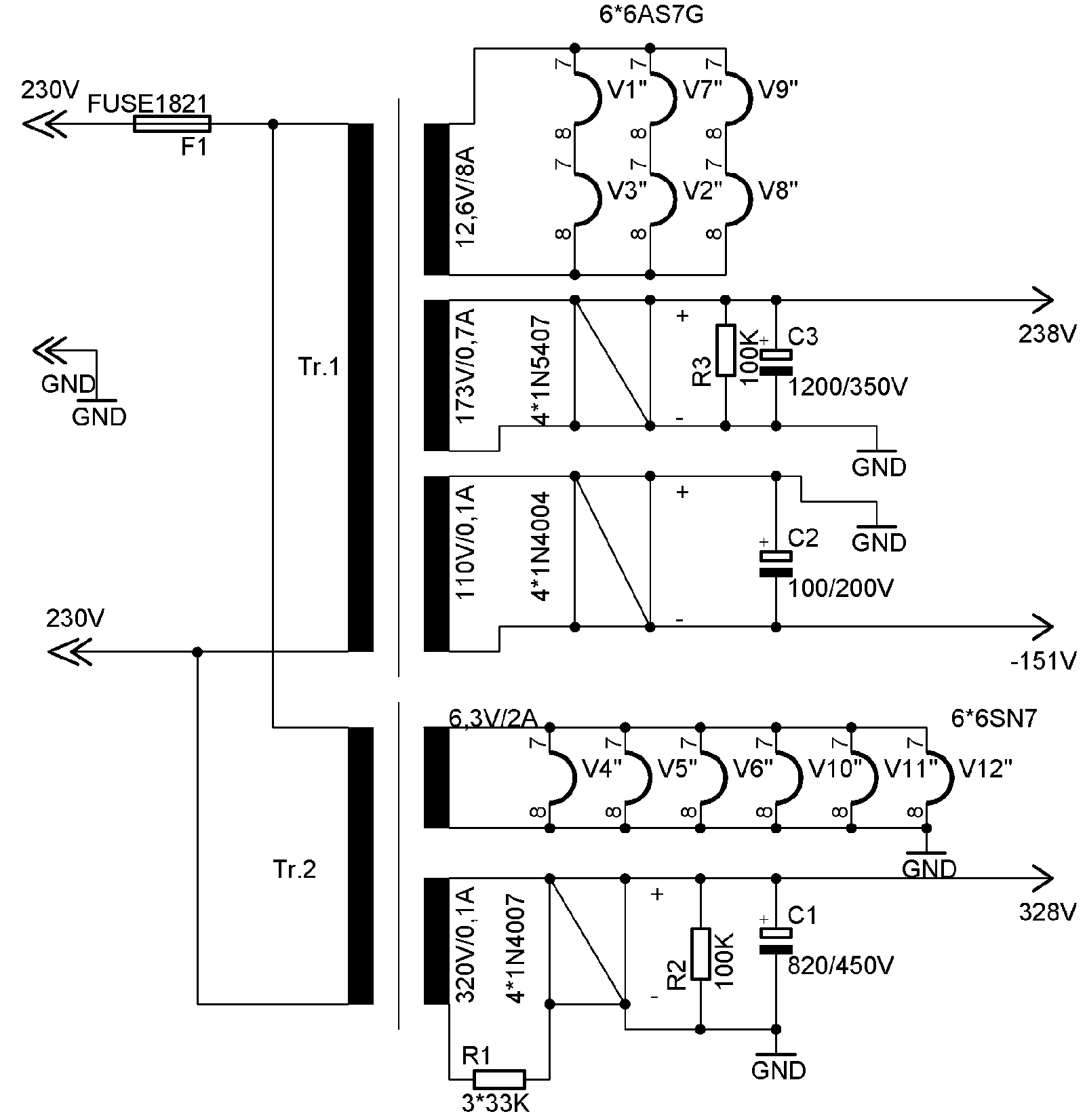 Bei den Endröhren habe ich pro Röhre (2 Systeme) parallel geschaltet.