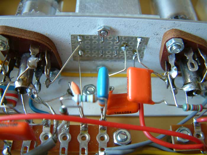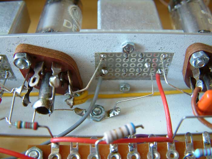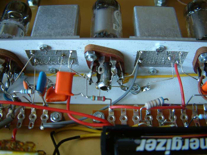 Die Erzeugung der negativen Gittervorspannung geschieht, indem die Betriebsspannung über den Widerstand 520 Ohm nach