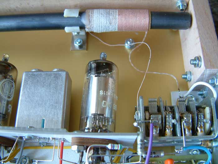 Im Eingang findet sich eine Ferritantenne. Die verschiebliche Spule soll für gute Abgleichbarkeit etwa im vierten
