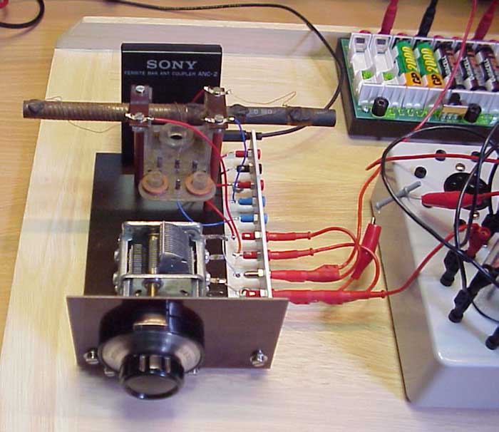 Auf der linken Seite erkennt man den Ferritstab mit den diversen Spulen - ein Ausbau aus einem Röhrensuper der 50er