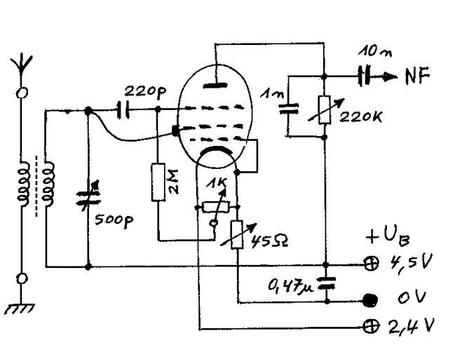 offenbar besonders hoch. Mit einem Ra von 150 kΩ und nachgeschaltetem NF-Verstärker geht bei nur 4,5 V