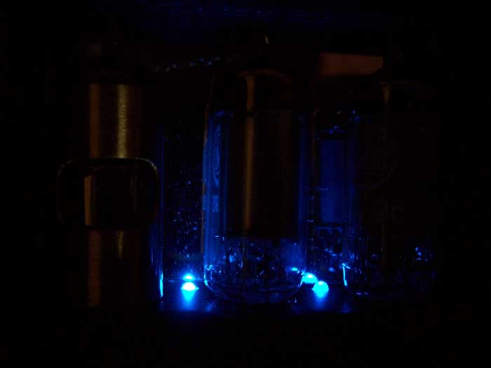 LED von unten beleuchtet. Sieht wirklich toll aus, zumal man das Leuchten der Heizfäden eh kaum sieht.