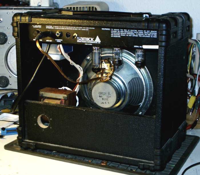 EF86 in der Vorstufe und EL84 in der Endstufe, sowie ein nettes Gimick, dem Tremolo-Effekt mit einer ECC83. Da ich keine