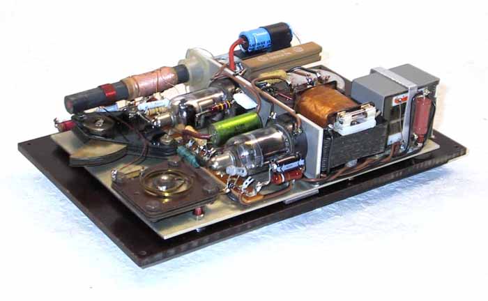Für die Heizung wurde ein kleiner Trafo (der graue im Bild) eingesetzt. Somit entfiel auch der "Heizofen"