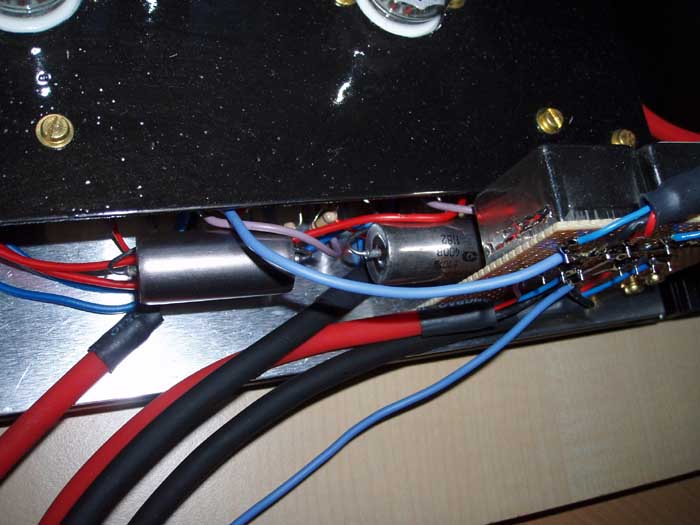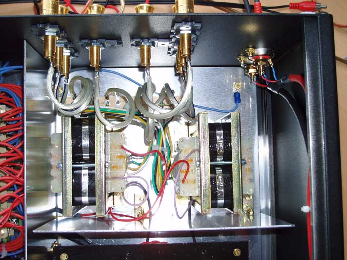 Daraufhin wurden die bereits geplanten Eingangsübertrager eingebaut. Da ich die Anzahl der Kondensatoren im