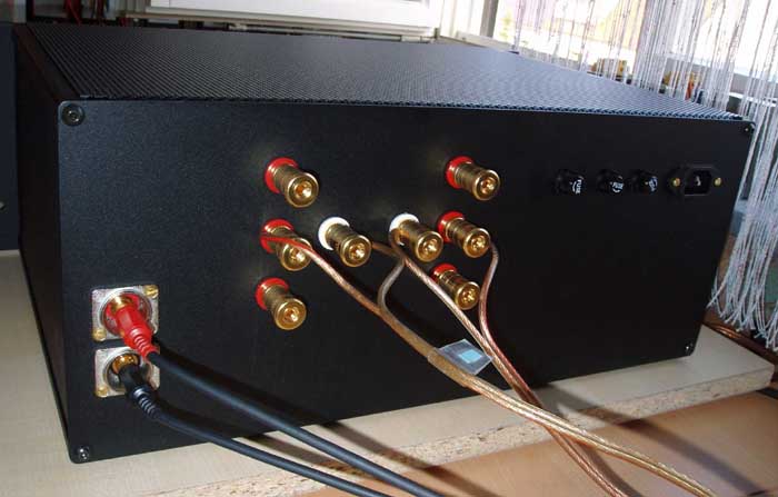 Der Verstärker wurde zuerst auf einer Aluplatte aufgebaut, danach mit Trennwänden versehen und in das Gehäuse