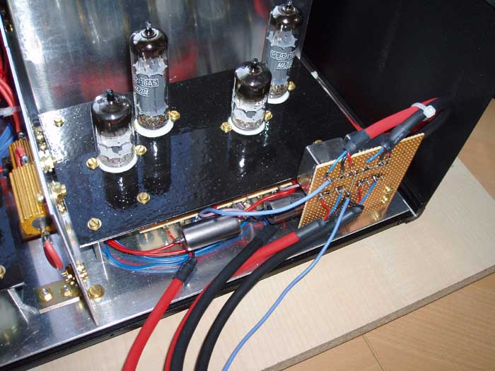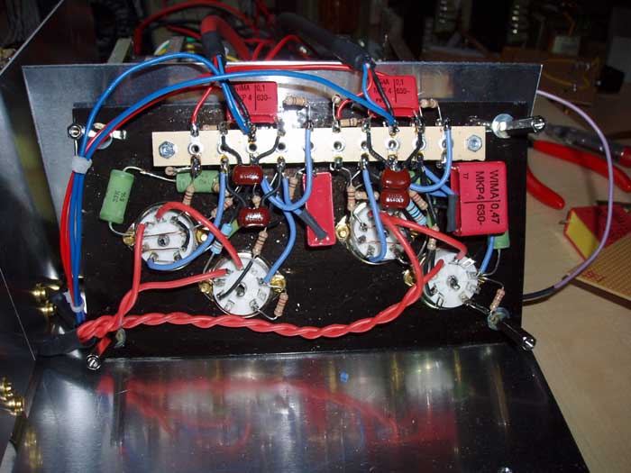 eingesetzt. Die Röhren wurden auf kleinere Aluplatten gesetzt, wobei unter den Verstärkerröhren freiverdrahtet