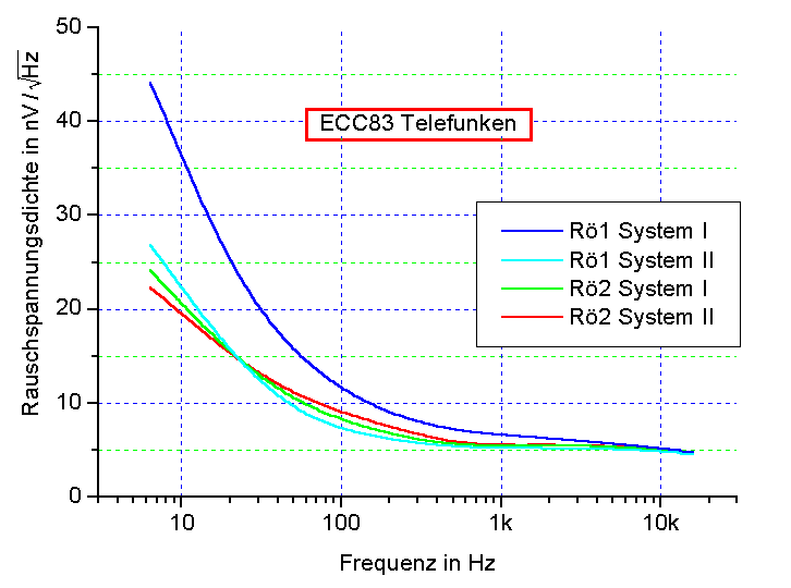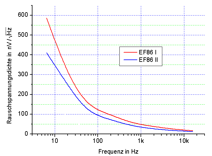 der Rausschspannungsdichte ist typisch für die untersuchten Röhrenexemplare.