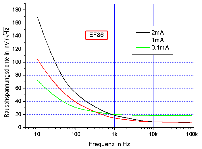 9. Spektrale Rauschspannungsdichten der EF86 für verschiedene Anodenströme
