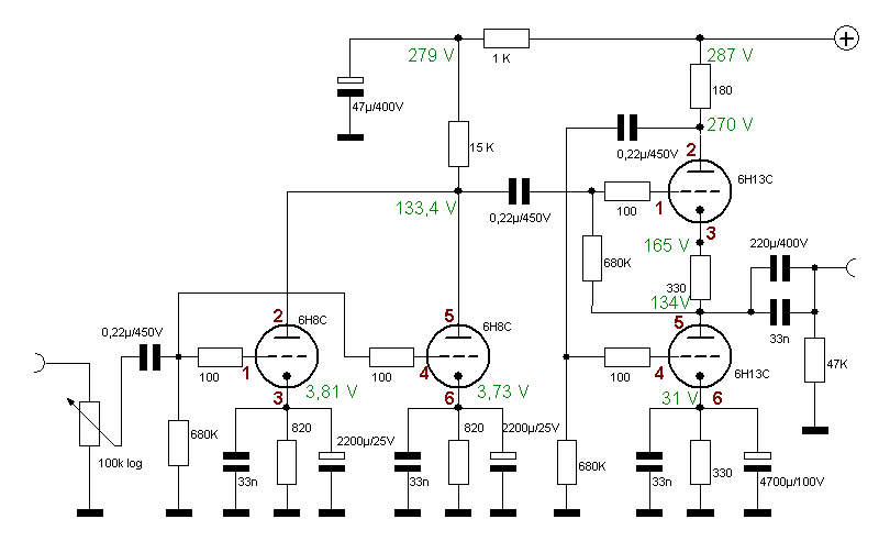 Hatte es mit einem System der 6N8S versucht und festgestellt, es reicht aus die 6N13S auszusteuern.