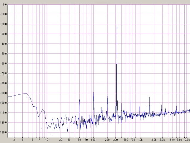 Die aufgenommenen FFT-Spektren eines 315 Hz -Tones von der CD ist mittels einer recht einfachen Soundkarte entstanden. -10 dB entsprechen 1,8Volt an 122 Ohm.