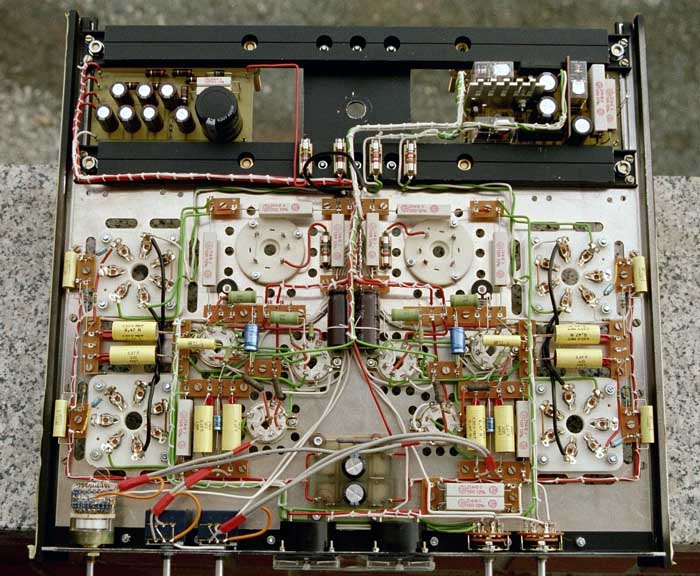 Die Röhrenbestückung: 2x6SL7GT, 4x6SN7EH, 4x6C33C-B, 2x5U8C.