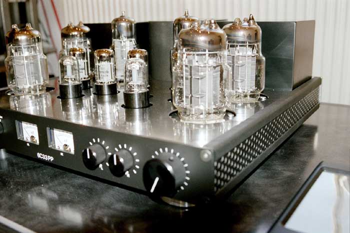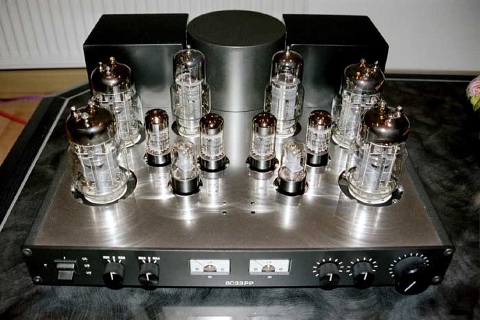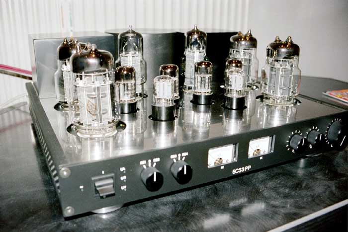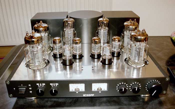 Mein Gegentaktverstärker mit der 6C33 nach "Klaus-Art" ist nun fertig. Einige optische und konstruktive Details sind von mir nach meinem