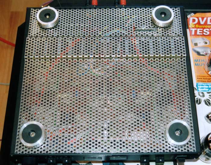 Beide Ausgangsübertrager sind von Herrn Baule. Die Gehäusefüße sind aus dem Mediamarkt, 20 mm hoch und